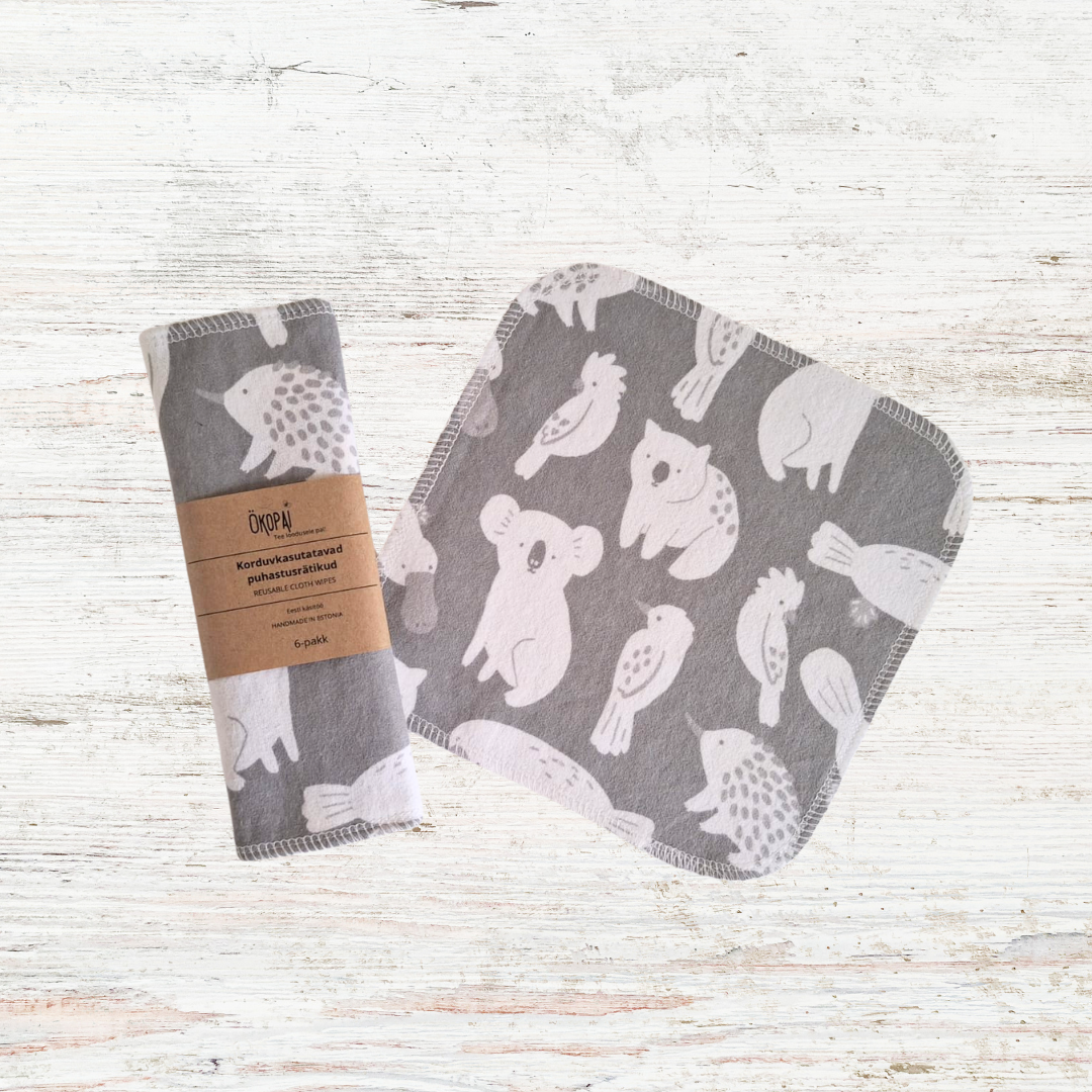 Puhastusätikud, reusable cloth wipes, 6tk.Loomad